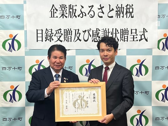 左:四万十町長 中尾 博憲氏、右:有限会社アクアテック 代表取締役 大和田 健斗