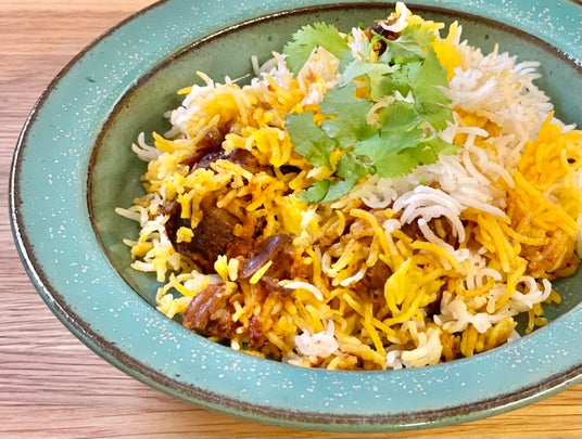 柔らかなマトンとスパイスの調和を楽しめる炊き込みカレーごはん。