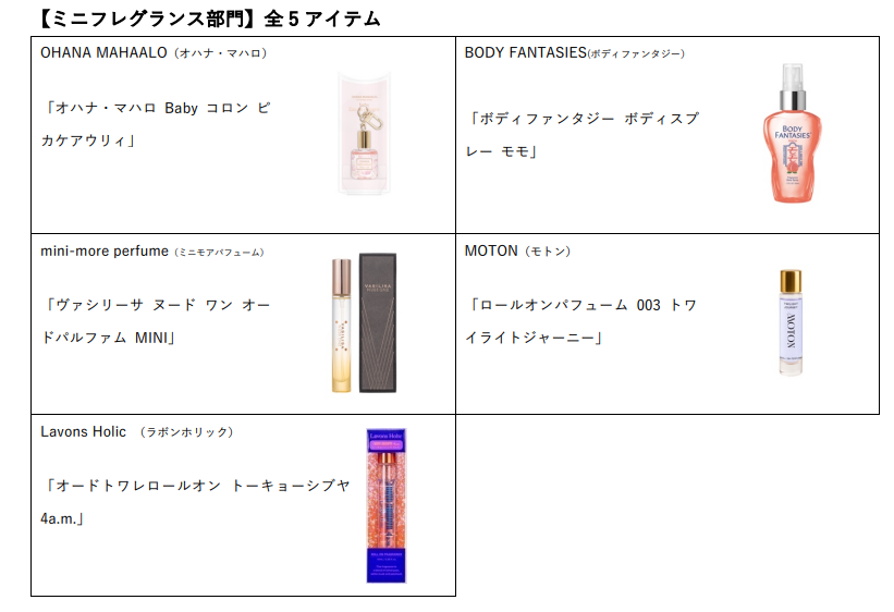 今年で3年目となる本イベントは、「もっと、もっと、たくさんの人が気軽に香水を楽しめますように!」をコンセプトに、企業の垣根を超えてノミネートされた多彩なフレグランスの中から、「トレンドフレグランス部門」、「ミニフレグランス部門」、「K-フレグランス部門」、「コラボフレグランス部門」の受賞アイテムを発表。