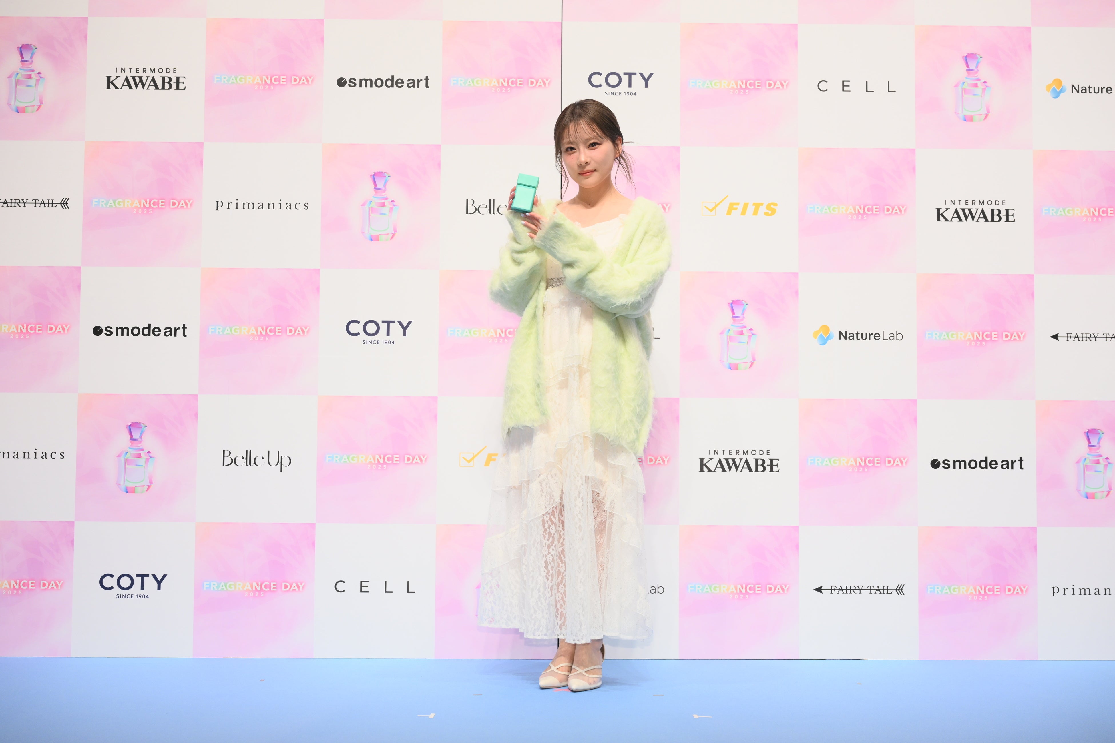 アンバサダー就任の話を聞いたときは「本当に驚きました」と目を丸くし、「普段から香水を使うのでとても光栄でしたし、うれしかったです」喜んだ。「ヌードワン」の香りとの共通点については「普段グループの中では最年少で幼いイメージがあるかもしれませんが、ステージでのパフォーマンスはクールで堂々とした姿もお見せできているのではないかと思います。ヌードワンとも雰囲気が似ていると感じています」と自⼰分析。完成したビジュアルには「本当にかわいく撮っていただけて嬉しいです」と声を弾ませ、撮影を「3つのコンセプトで撮影したのですが、すべての⾐装がかわいらしかったです。頬にハートのメイクをした撮影もとても印象に残っています」と振り返った。