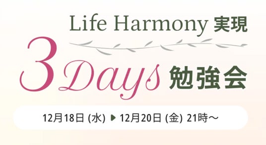 キャリアと家庭の調和を目指す「Life Harmony実現 3Days勉強会」を完全無料で初開催決定!