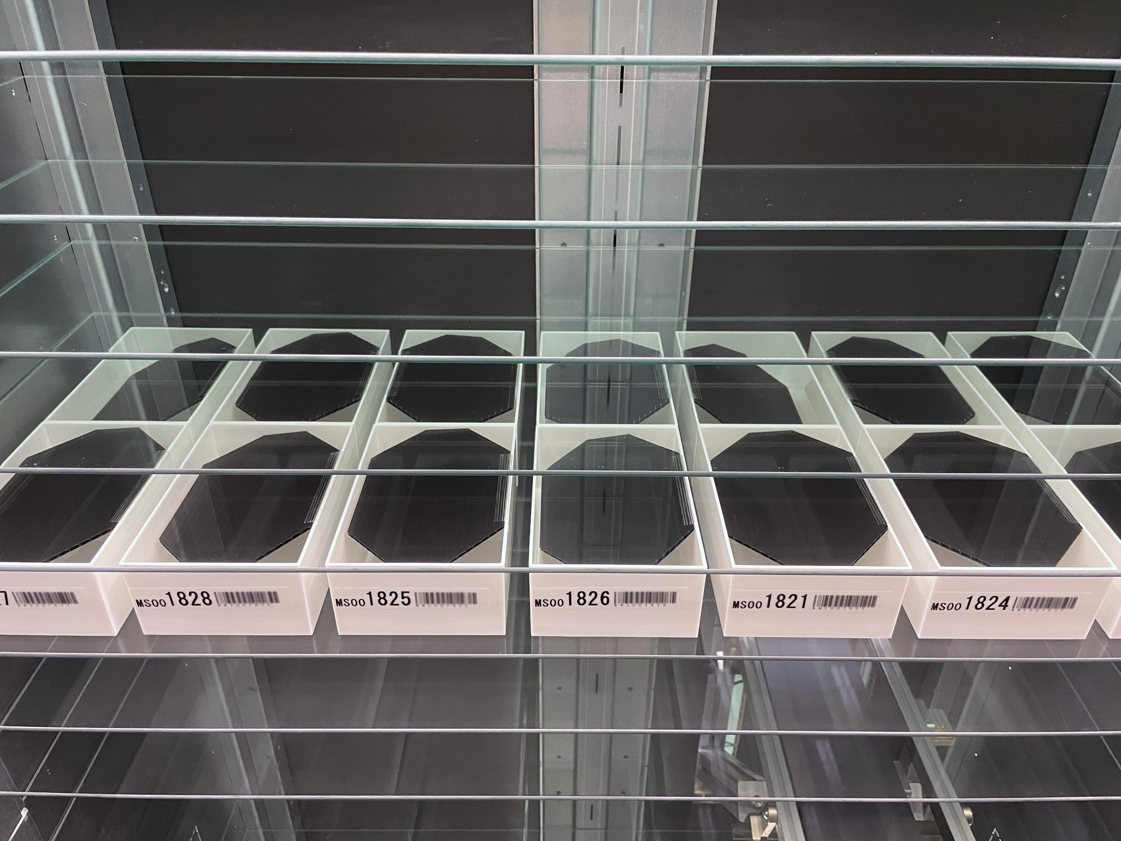 【画像2.:rBox内部(棚ピッチ)】トレーは取り扱う商品寸法により選定、棚高さもトレー高さ+最小5mmの棚ピッチで設計され、超高効率保管。