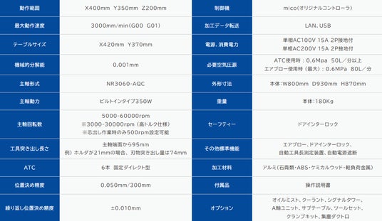 - 高速回転スピンドル(最大60,000rpm)搭載