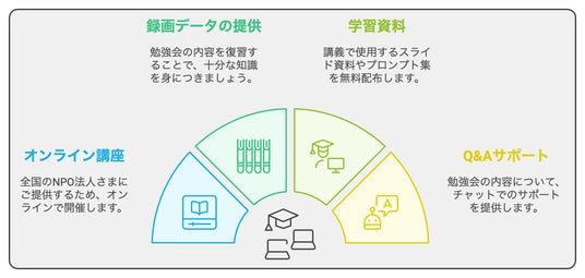 これは、教育支援に携わるNPO法人の皆さまに、経済的な負担をかけることなく、最新の生成AI技術を習得していただくためです。