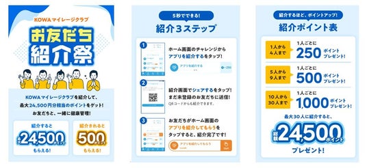 紹介されたお友だちにも、もれなくKOWAマイレージクラブポイントを500ptプレゼント!