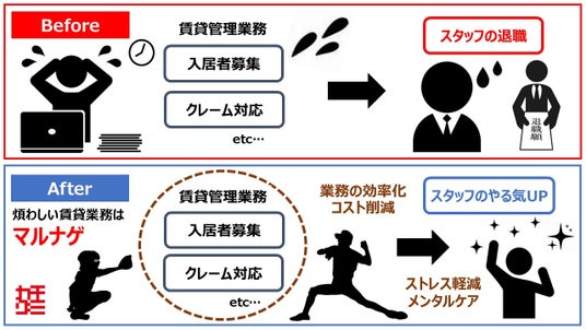 株式会社カチグミ(本社:東京都千代田区、代表取締役:百井崇)は、不動産賃貸管理のBPO(Business Process Outsourcing:ビジネス・プロセス・アウトソーシング)、管理会社の賃貸業務プロセスの全てを受託する新商品「マルナゲ」のサービスを開始いたしました。入居者募集から入居管理、退去・解約まで全ての業務を上級職者が受託するのは、「不動産業界初!!」※2025年1月当社調べ(国内における賃貸管理業務BPO)