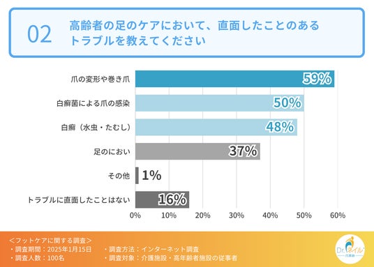 では、高齢者の足のケアにおいて、直面したことのあるトラブルにはどのようなものがあるのでしょうか?
