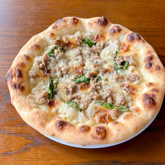 スモークハウスチーズの薫香とサルシッチャ(イタリアンソーセージ)の旨味が口いっぱいに広がる贅沢な味わいを演出。マッシュポテトをベースにブラックペッパーを効かせた食べ応え十分なピッツァに仕上がっています。