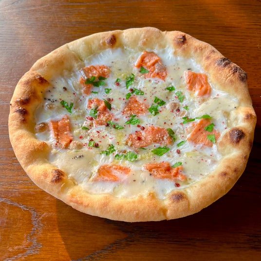トリュフの豊かな香りとスモークサーモンのまろやかな味わいが絶妙に調和し、濃厚なチャウダーソースがピッツァにコクを加えます。トリュフジャックチーズがその一層のリッチさを引き立てる贅沢な一品です。
