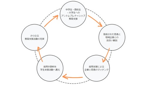 ミライゴトの最大の特徴は、従来の採用費用を地域の若者育成に直接還元する循環型収益モデルです。