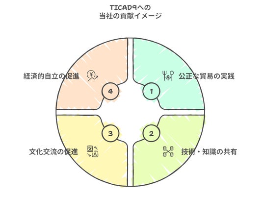 TICAD9は、アフリカの持続可能な経済成長と社会発展を支援するための国際的な対話と協力の場を提供することを目指しています。そこで株式会社クロストレードは、この理念に共鳴し、主に以下4点の取り組みを通じてTICAD9の目的達成に貢献するつもりです。