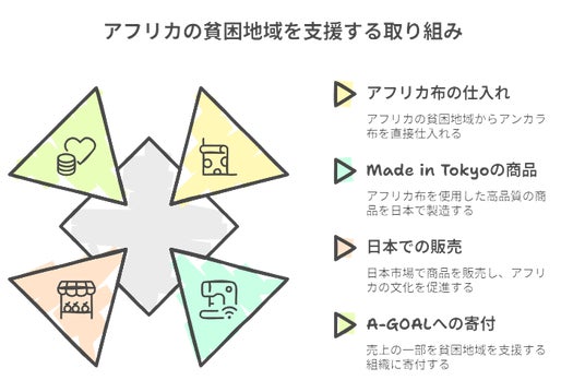 当社は製品販売を通じてアフリカの経済発展に貢献するだけでなく、売上の一部を、アフリカの貧困地域等においてスポーツを通して支援する団体(一般社団法人AーGOAL)に寄付する仕組みを導入し、単なるビジネスを超えた持続可能な社会貢献活動を実践することで、アフリカと日本の絆を深める役割を担っています。