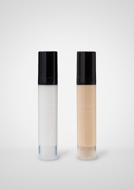 dejunのDE UV creamは、美肌に導きながらプロテクトすることに特化した、スキンケア融合型の美容液UVクリーム。肌に優しい紫外線吸収剤フリーで、ノンケミカル特有のツッパリ感がなく、白浮きもしない。乳液の様に柔らかく肌に優しく馴染む使用感で、子どもから大人まで男女ともにご使用いただけます。