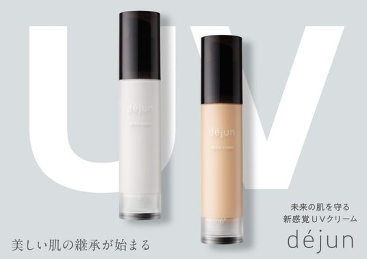 株式会社DE’Japan(本社:東京都港区、代表取締役:間宮純子)は、次世代エイジングケア(※1)のための成分で非水溶性の『5-デアザフラビン』(※2)と、ウォートンゼリーから採取したヒト臍帯由来の間葉系幹細胞『エクソソーム』(※3)の世界初(※4)となる化粧品へのW配合に成功。毎日のスキンケアだけで、ゆで卵のようなつるんとしたお肌に導きたいというプロデューサーの希望を叶えるべく、複数の機能性成分を高濃度に使用した化粧品新ブランド「dejun(ドゥジュン)」(以下dejun)を立ち上げ、シリーズ第一弾として、DE UV creamを先行発売いたしました。