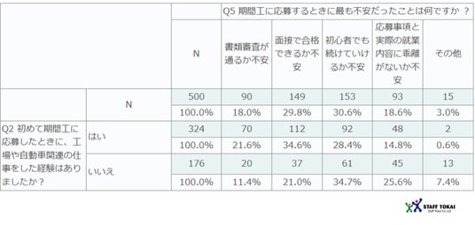 今回、スタッフ東海は、事前アンケートで「期間工として働いた経験がある」と回答した20代から60代の男女500名を対象に、期間工の応募や就業に関する調査を実施しました。