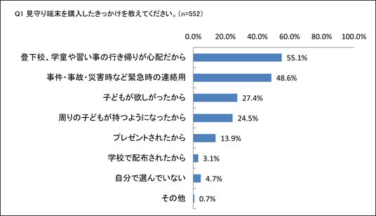 子どもにGPSを持たせるきっかけとしては、「登下校、学童や習い事の行き帰りが心配」「移動中の事件・事故等緊急時の連絡用」といった理由が大半です。