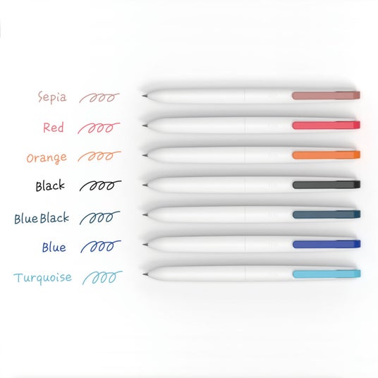 インク色:セピア、レッド、オレンジ、ブラック、ブルーブラック、ブルー、ターコイズ(全7色)※クリップの色が内蔵のインク色を表現しています。