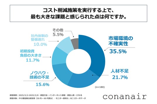 ・コスト削減を実行する上で、最も課題と感じられた点は「市場環境の不確実性」
