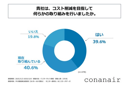 製造業を営む中小企業の8割以上が、何らかのコスト削減に向けた取り組みを行っている