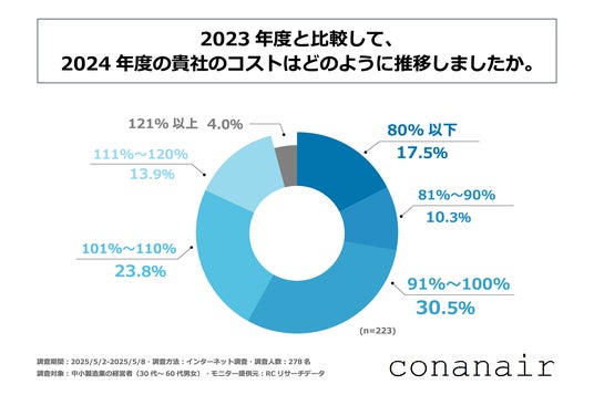 製造業を営む中小企業の約6割は、2023年度と2024年度の比較でコストを100%以下に抑えられている