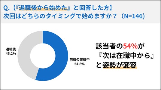 - 退職後に転職活動を始めた回答者の54%が、次回は『在職期間中』から転職活動を開始すると回答