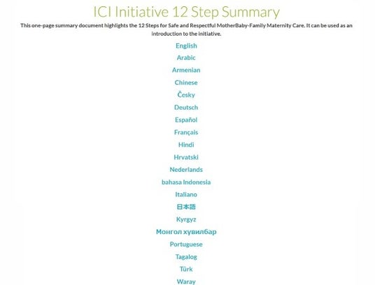 現在、世界30か国以上で100以上の施設がICIに参加、12ステップは20か国語に翻訳され国際的な広がりを見せている。日本国内では、2024年10月に長野県で1施設、12月に愛知県で2施設が認証されており、それに続き関東圏では初めて、2025年3月によしかた産婦人科が認証された。ICI認証施設では妊産婦や家族のフィードバックを取り入れながら自己評価し、目標を決めてケアの改善に取り組んでおり、継続的なイニシアティブ実践をおこなっている。