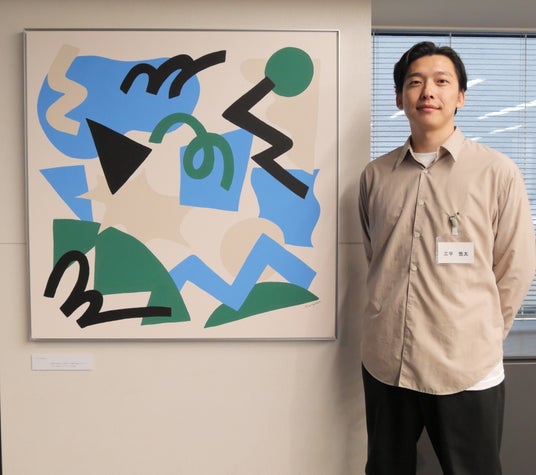 作品の1つは水のなかに浮かぶ人の周りに波紋が広がる様子を表現していますが、抽象的な描き方をしています。セミナールームにあり、セミナーを受ける方々が見るからこそ、ふとした瞬間に作品を見て、少しの時間でも、「何を描いた作品だろう」と思考を巡らせるきっかけになればうれしいと考えています。