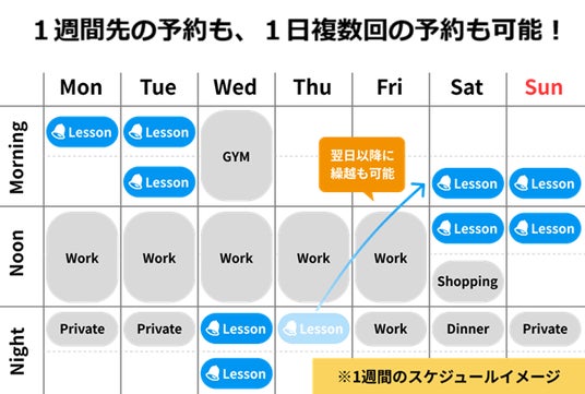 ※「余裕がある日にまとめて受講」や「レッスンができなかった分を翌日に繰り越して受講」等が可能です。
