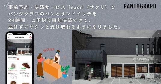 3月4日より24時間事前予約、決済サービスsacri(サクリ)をスタート。100種類以上のパン、サンドイッチ、焼き菓子を選べる。当日分は早朝4時まで予約可能。導入以来、毎日予約が入りお客様からの評判も上々。