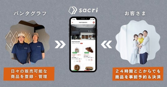 『sacri』は、お気に入りの街のパン屋さんやパティスリーの商品をお客さまがどこからでも簡単に事前決済と取り置き・お取り寄せができるサービスです。働いている方やお店から遠いところに住まれている方、並ぶことが難しい方など、今まで来店できるタイミングにパンが売り切れていて残念な思いをされることが多かったパン好きの方にも、お気に入りのパンを24時間お気軽にご購入いただけるようになります。また、事前決済のみのためお店では受け取るだけのスムーズなフローなので、子連れの方やお時間が無い方にもご安心いただけます。2025年3月時点にて17万人を超えるお客さまにご利用頂いています。