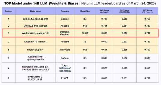 グローバルAI企業のUpstage(日本法人:Upstage AI株式会社)と、日本語特化AI開発を強みとするカラクリ株式会社は、両社で共同開発した日本市場向けの言語モデル「Syn」(シン)をリリースしました。本モデルは、パラメーター数14B(140億)未満 日本語対応LLMとして、米国・Weights & Biases社が提供する「Nejumi リーダーボード」において、業界トップクラスのベンチマーク評価を獲得しています(注1)。特にエンタープライズ企業が求める「コスト最適化」と「高精度なAI活用」を両立した次世代型LLMとして、日本のユーザーに新たなソリューションを提供します。両社は本モデル導入を通じて、企業との共創を進め、各業界特有の新しいユースケースを創出することで、日本のビジネス現場における生成AIの導入をさらに加速させていきます。
