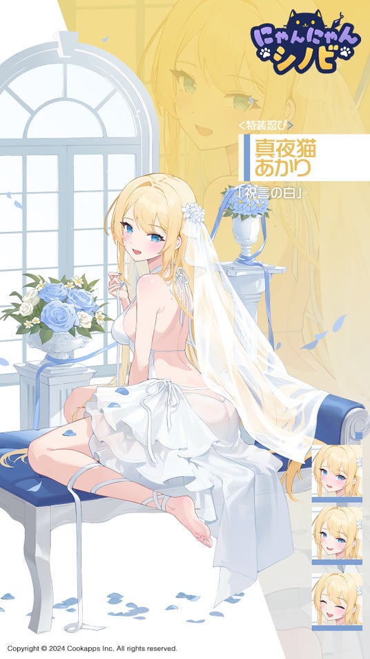 人気キャラクター「真夜猫あかり」のウェディングテーマ特別バージョン『祝言の白』がリリースされ、このキャラクターは、新しいガイドミッションを通じて、全ユーザーが無料で獲得できるチャンスが提供されます。