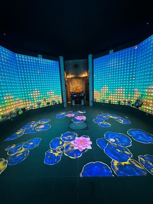 仏様に向けた光が、訪れる人の心を静かに照らす体験は、国内外の方からも高く評価されて 「歴史とテクノロジーの融合」をテーマに、最先端の映像技術を活用しながらも、変わらぬ供養の心を大切にするものです。単なる目新しさではなく、「故人とご遺族に真剣に向き合い、しっかり供養をささげていく」姿勢を大切にしています。