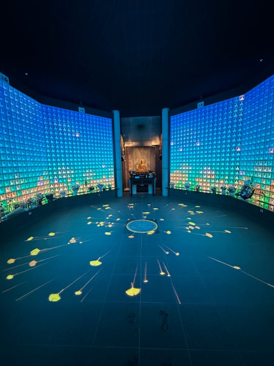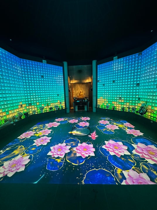 その空間は、仏教の「浄土=光に満ちた理想郷」という思想を、現代技術で具現化したものであり、