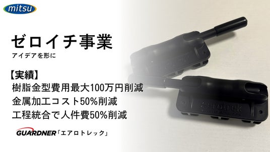 現場経験10年以上の技術者が設計段階から量産まで一社通貫で支援し、樹脂金型費用最大100万円削減、金属加工コスト50%低減、塗装工程統合で人件費半減を実現。アイデアをゼロからイチへ形に。画像は、通販の虎出演商品 ガードナー株式会社「エアロトレック」。