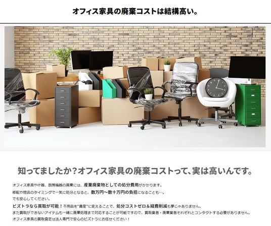 オフィス家具・厨房機器の廃棄コストを削減する法人向け買取サービス『ビズトラ』が、関西・東京エリアでの対応を強化しました。