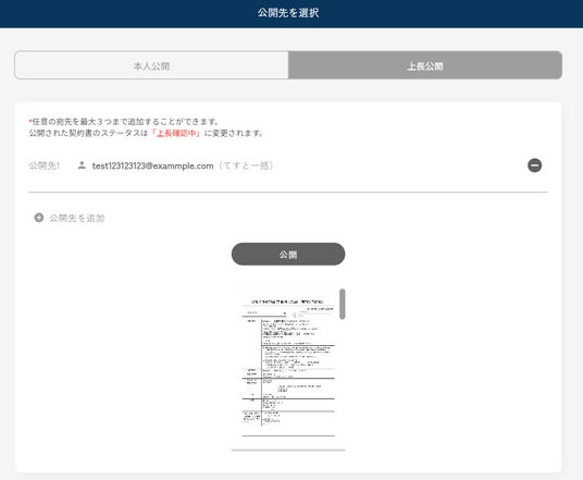 従業員さんのPCやスマホに送信:作成した契約書は従業員さんのPCやスマホに一発送信。また一回で大人数に送信する一括送信も可能。アルバイトさんの多い企業にも対応しています。