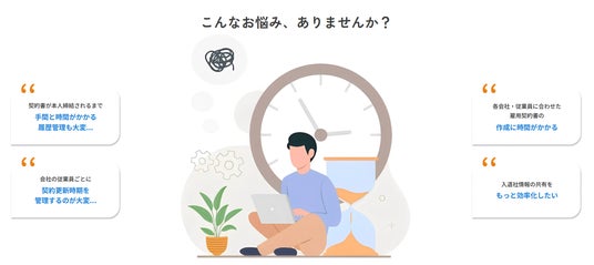 煩雑な雇用契約の管理業務を「契約書作成・送信・電子サイン・契約期間管理」までワンストップで完結。雇用契約管理と社員情報の共有のDX化でバックオフィス業務を大幅に効率化。