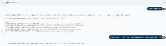AI労務サポート:雇用契約書作成の不明点や労務関連の書式のひな型作成などに活用いただける生成AI【AI労務サポート】を実装。労務管理をアシストします。