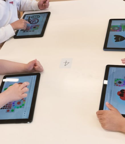 その現象をもとに、タブレットを使って「自分だけの花」をプログラミングで再現しました。