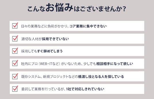 育児や介護と両立しながら働きたい方々が、自身のスキルを活かして社会とつながる新しい働き方を提案します。また、企業にとっては、必要なスキルを持つ即戦力人材をスムーズに確保できるプラットフォームとなり、コア業務への集中や業務効率化を支援します。