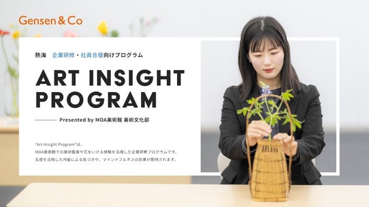 静岡県熱海市で企業研修事業を行う株式会社Gensen & Co(ゲンセンアンドコー)(本社:静岡県熱海市、代表取締役:佐々木梨華、以下「Gensen & Co」)は、公益財団法人岡田茂吉美術文化財団(本部:静岡県熱海市、代表理事:中島宏平、以下「MOA美術館」)と共同で、AI時代に必要とされる「感性」「創造性」「ウェルビーイング」を育む企業研修「Art Insight Program(アート・インサイト・プログラム)」の提供を開始いたしました。