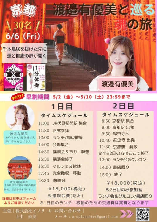 この注目を受け、渡邉氏は6月6日・7日に“氣”の聖地・京都を舞台とした2日間の特別リトリート『魂の旅 in 京都』を開催いたします。