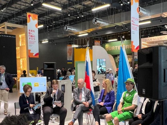 スロベニアパビリオンパビリオン館長 サーシャ・レバン氏は「ミツバチは協働の象徴であり、豊かさは協力から生まれます」と語り、持続可能性、文化的対話、国際連携におけるスロベニアの積極的な役割を力強く訴えました。