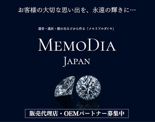 兵庫県神戸市に本拠を置く株式会社MEMODIA JAPAN(代表:藤波 心)は、2025年5月、遺骨・遺灰・髪の毛・爪などから人工ダイヤモンドを生成するメモリアルジュエリーの卸専業会社として設立されました。葬儀やペット業界をはじめ、出産祝い、結婚記念、恋人や家族との絆を象徴する記念品として、全国の代理店・OEMパートナーを通じて新たな価値を提供します。同社は現在、事業拡大に向け、全国のパートナー企業を積極募集しています。