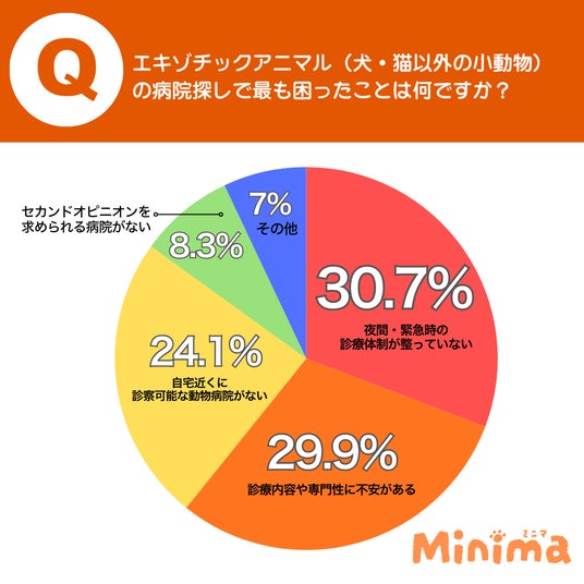 「夜間救急でエキゾチックアニマルを診てくれる病院が近場にない。往診専門で診てくれる医師がいるが、他の往診があったりするとすぐには来てくれない」(デグー、チンチラ飼育者)