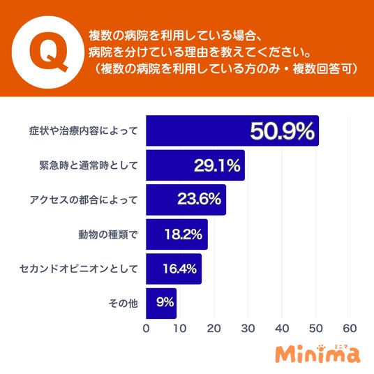 一つの病院だけでは対応しきれない現状を、飼い主が工夫して補っている様子がうかがえます。特に「症状や治療内容による使い分け」が多いことから、各病院の専門性や得意分野を把握し、状況に応じて最適な医療を求めていることが分かります。