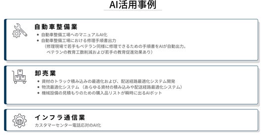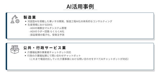 事業内容:生成AI・DXコンサルティング、AIシステム開発、製造業向け業務支援、AI研修、TikTokコンサルティング