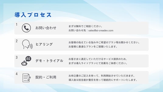 メール:sales@ai-creadev.com