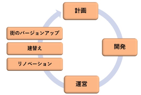 成長サイクル3.まちの完成後もつづく、運営やバージョンアップまでを見据えた持続可能なまちの成長サイクルを支えます。